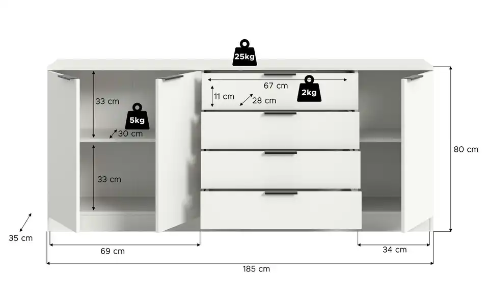 - max. Belastbarkeit je Schubkasten bis ca.2 kg