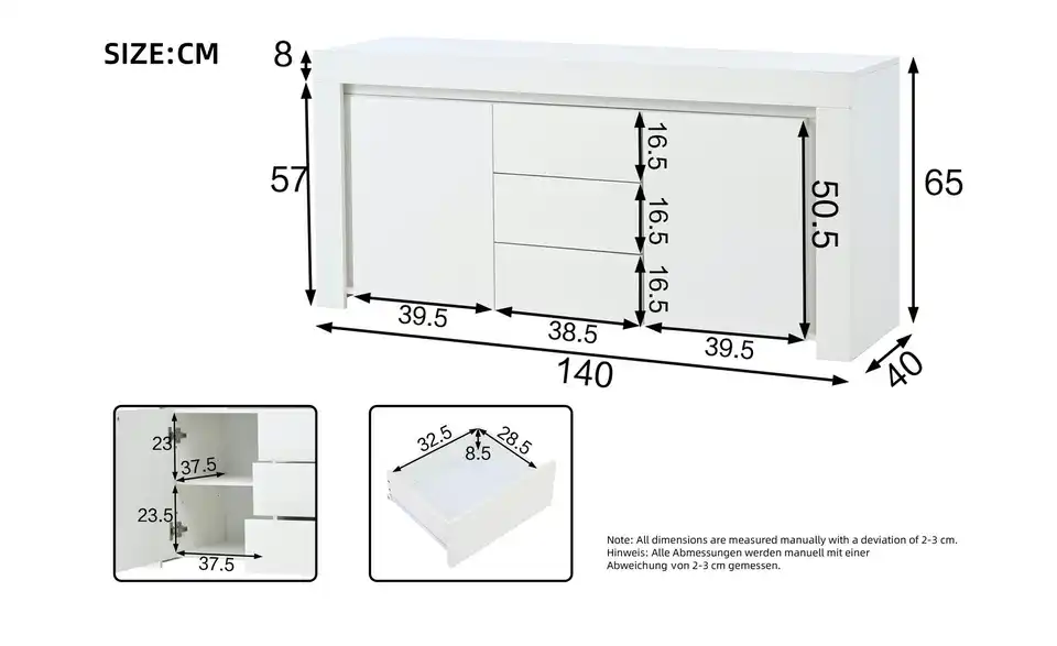 - max. Belastbarkeit je Schubkasten bis ca.10 kg