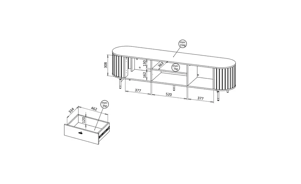 - Lieferumfang / mitgeliefertes Zubehör1 Lowboard ohne Inhalt und Dekoration
