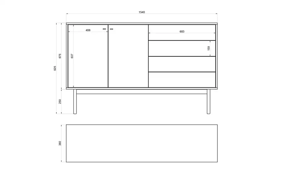 - Lieferumfang / mitgeliefertes Zubehör1 Sideboard ohne Inhalt und Dekoration