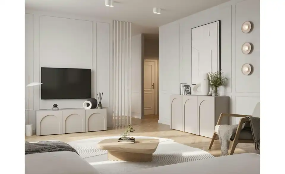 - Lieferumfang / mitgeliefertes Zubehör1 Lowboard ohne Inhalt und Dekoration