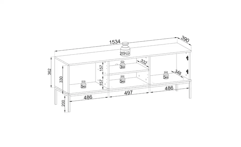 - Lieferumfang / mitgeliefertes Zubehör1 Lowboard mit LED