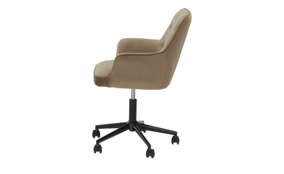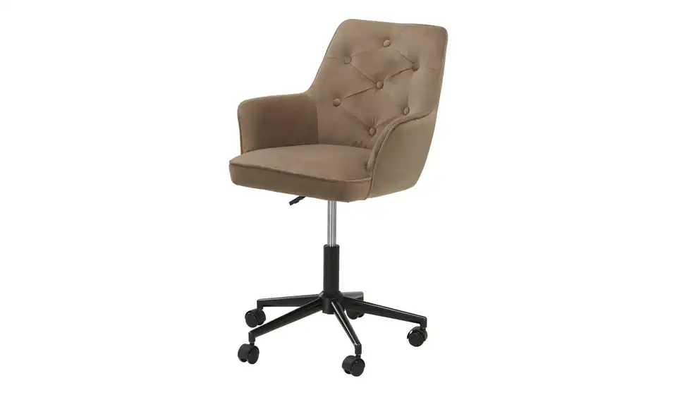 Dieser elegante Bürostuhl in rehbrauner Samtoptik verleiht jedem Arbeitsbereich eine stilvolle Note. Mit Zierknöpfen, Armlehnen und manueller Höhenverstellung verbindet er klassisches Design mit praktischem Komfort.Lieferung & Versand