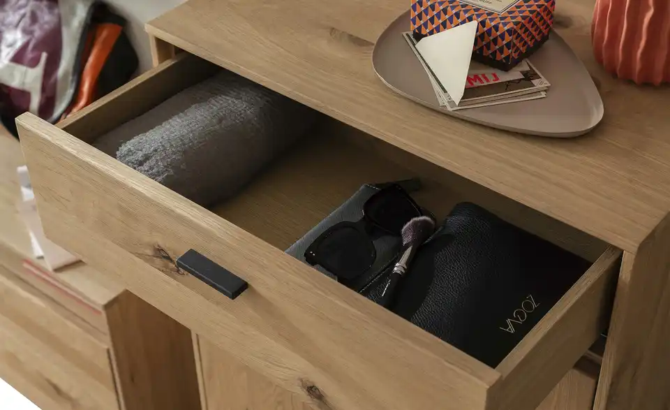 - Mehr zu FarbeFront, Korpus, Böden Kristalleiche geöltGriffe schwarzgrau