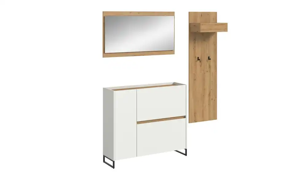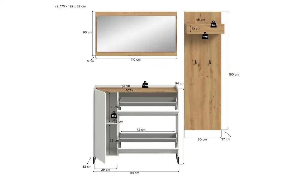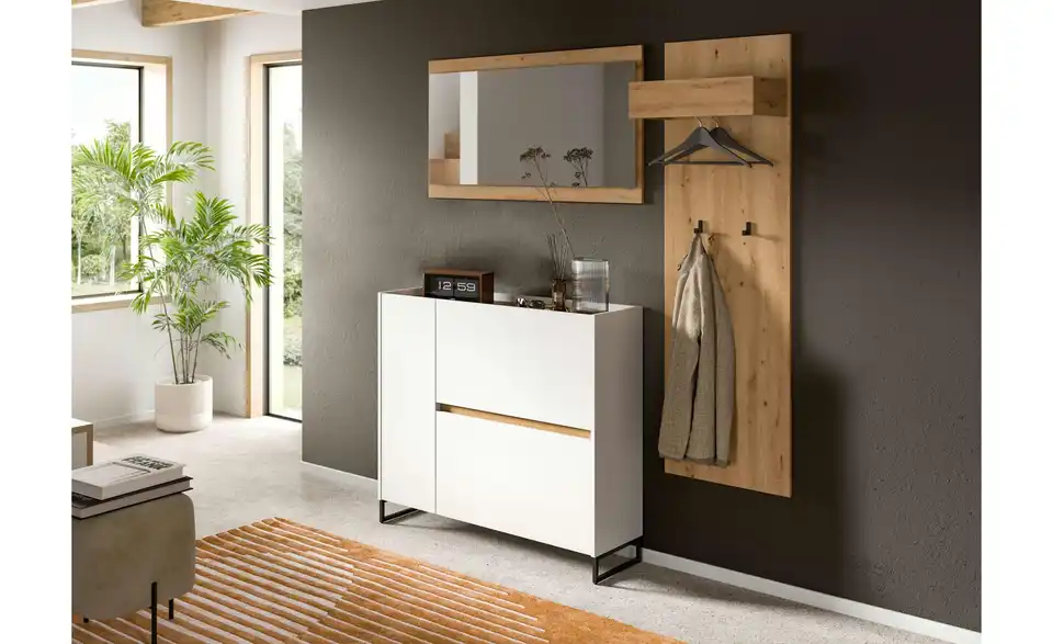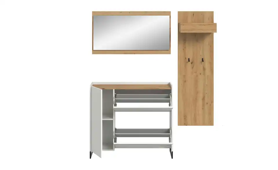 - Lieferumfang / mitgeliefertes Zubehör1x Schuhkommode, 1x Spiegel, 1x Garderobenpaneel
