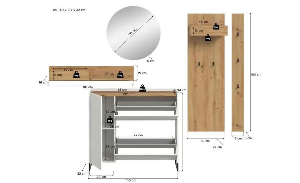 - max. Belastbarkeit je verstellbarem Einlegeboden bis ca.5 kg