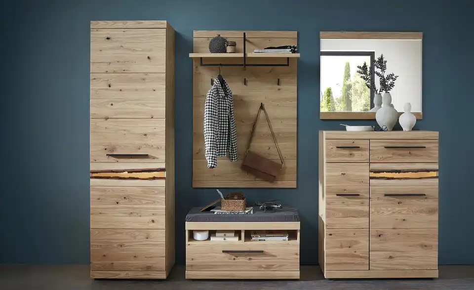 - Mehr zu MaterialPaneel Massivholz gebürstetHutablage Holzwerkstoff beschichtetKleiderstange, Haken Metall mit Feinstruktur lackiert