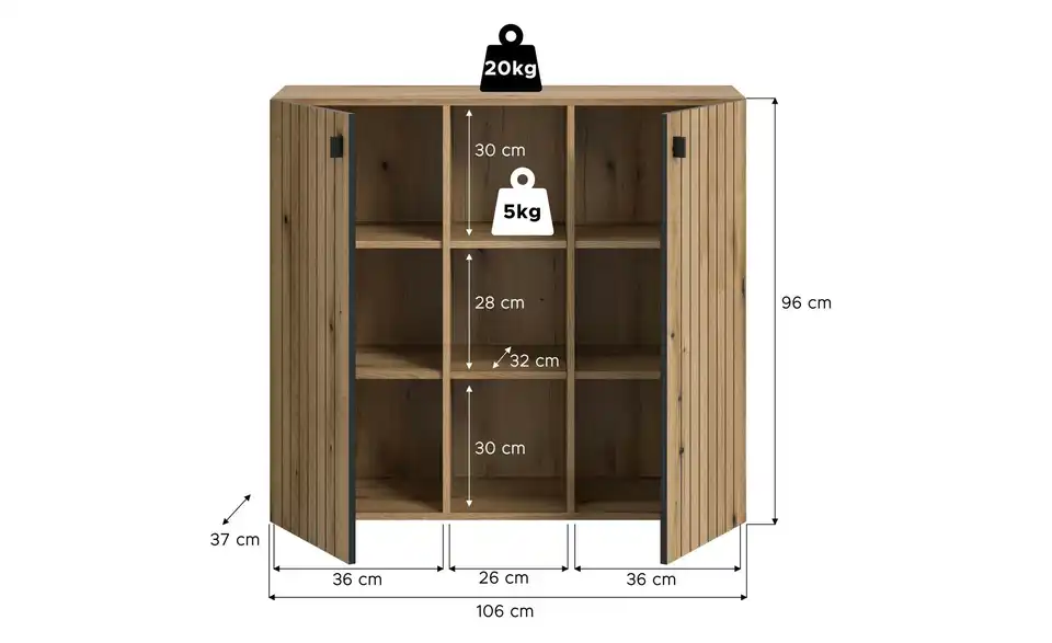 - max. Belastbarkeit je festem Einlegeboden bis ca.5 kg