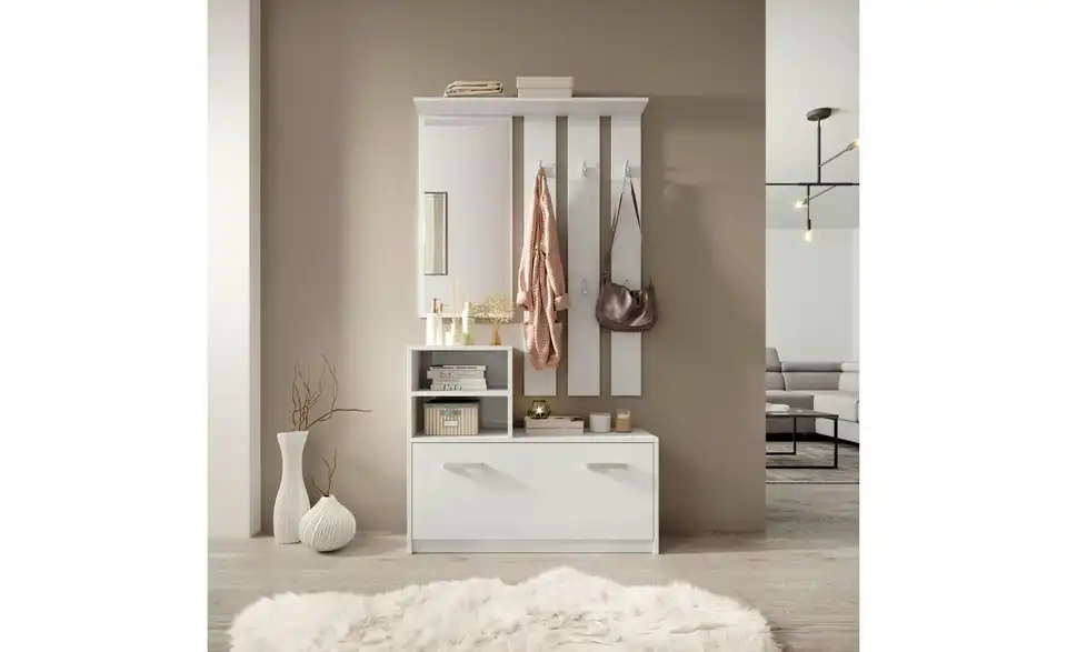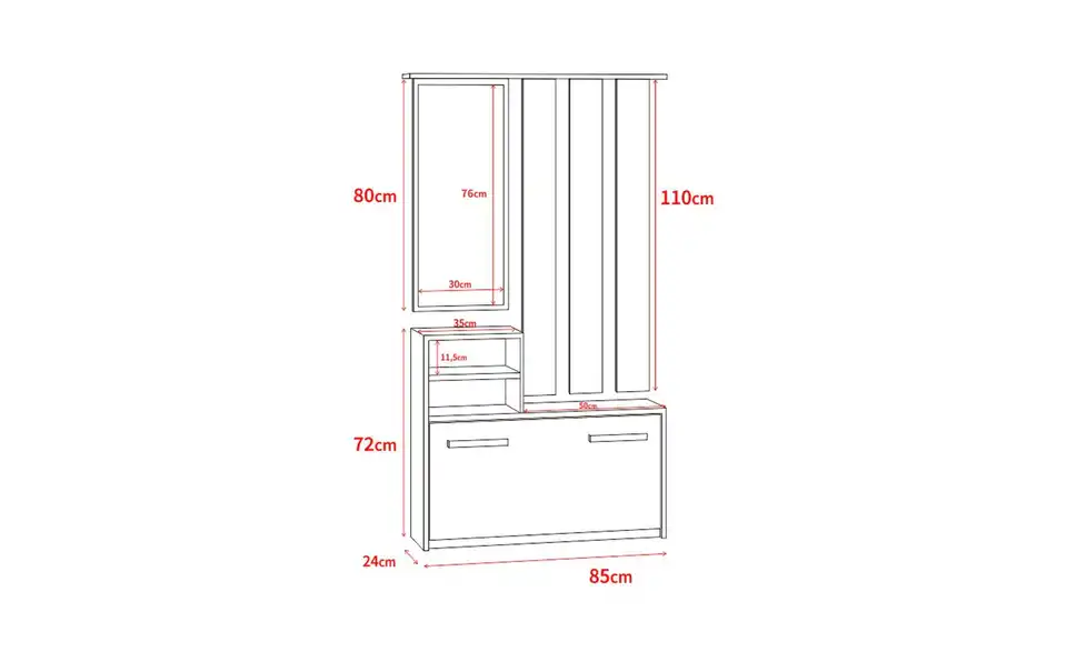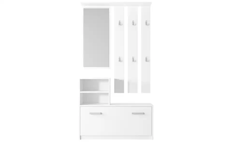- Lieferumfang / mitgeliefertes Zubehör1 x Spiegel, 1 x Garderobenpaneel, 1 x Regale, 1 x Schuhschrank