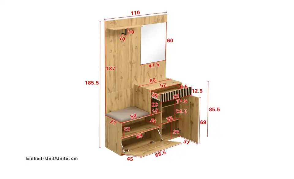 - max. Belastbarkeit je verstellbarem Einlegeboden bis ca.10 kg