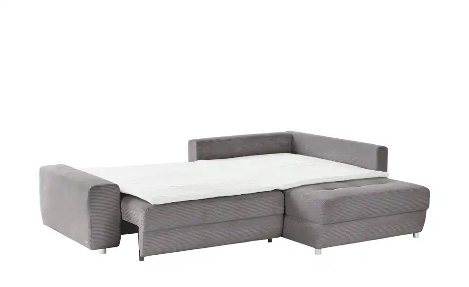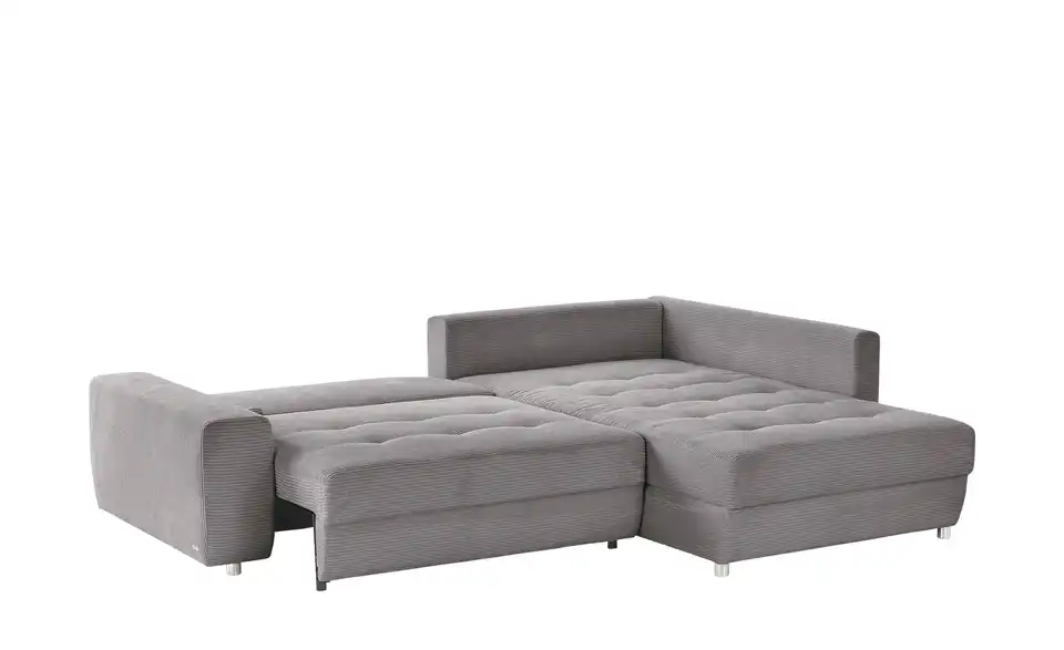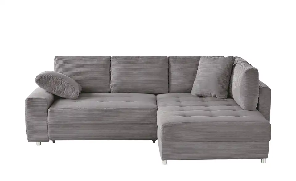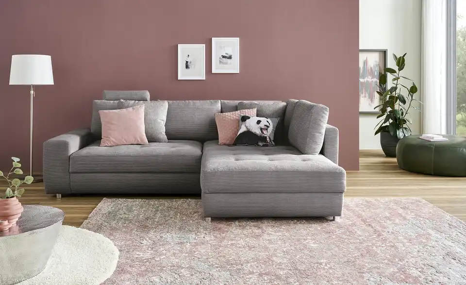 Das Ecksofa Arissa de Luxe garantiert Ihnen ein hohes Maß an Behaglichkeit. Sie können bei diesem Sofa auf hohe Qualität der Marke bobb setzen. Das Modell Arissa de Luxe ist mit einer Boxspringfederung sowie einer bequemen Polsterung aus Schaumstoff versehen und lässt sich dank des echt bespannten Rückens frei im Raum aufstellen. Bei dem Material des Gestelles handelt es sich um Kunststoff. Um Rückenkissen, Zierkissen sowie einen Topper müssen Sie sich nicht mehr kümmern, denn diese liegen dem Sofa bereits bei. Das Modell Arissa de Luxe stellt einen Bettkasten, in dem zum Beispiel das Bettzeug verstaut werden kann, zur Verfügung, lädt mit der geräumigen Sitztiefe von 81 cm zum Entspannen ein und nimmt 265 x 84 x 209 cm ein. Diese Couch wertet Ihre vier Wände auf praktische und ästhetische Art und Weise auf.Lieferung & Versand