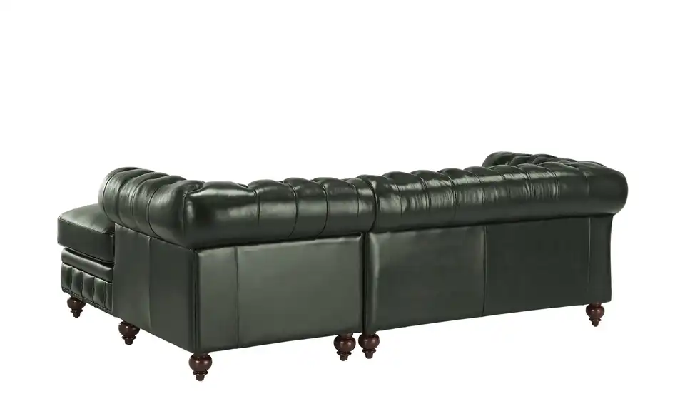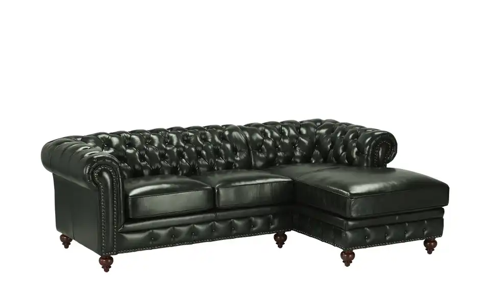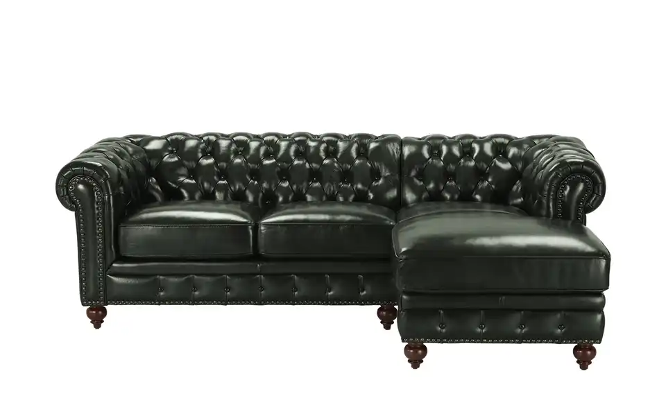 Hochwertiges Echtleder mit markanter Chesterfield-Steppung: Dieses Ecksofa strahlt nostalgische Eleganz aus. Liebevolle Details wie Nietenbordüren und formschöne Massivholzfüße verleihen dem Ecksofa den letzten Schliff. Machen Sie es sich mit Freunden und der Familie bequem: Dank des Taschenfederkerns und der Nosag-Wellenunterfederung bringt das Chesterfield-Sofa beste Komforteigenschaften mit.Lieferung & Versand