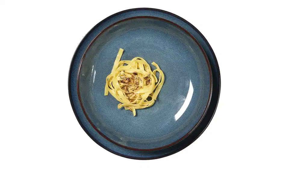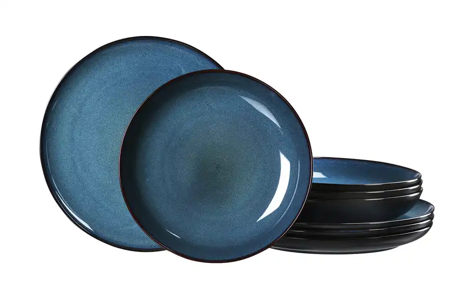 Natürlich trendig: Das Speiseservice bali versprüht einen entspannt handwerklichen Urban-Country-Charme. Da sich die blauen Farbverläufe und Strukturen auf Basis einer Reaktivglasur während des Brennvorgangs völlig individuell entwickeln, hat jedes Geschirrteil Unikat-Charakter. Die Flächen in seidenmattem Schwarz bilden auf der schlichten Coupeform einen schönen Kontrast zu den glänzenden Farbflächen und geben dem Geschirr einen markanten Charakter.Lieferung & Versand