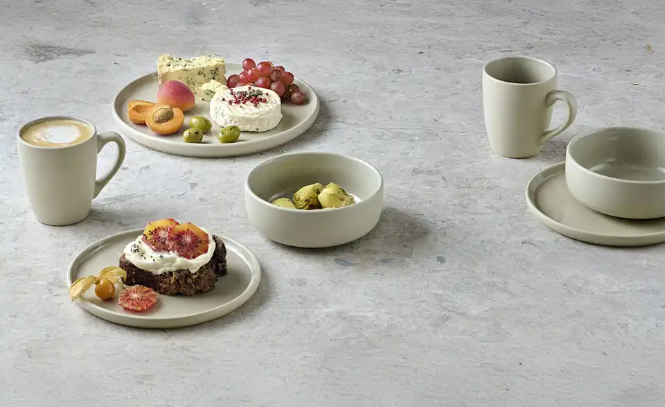 - Lieferumfang / mitgeliefertes Zubehör4x Kaffeebecher 400 ml4x Dessertteller Ø 21,5 cm4x Speiseteller Ø 26,5 cm4x Schüssel Ø 16 cm