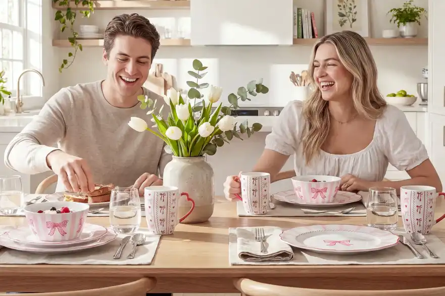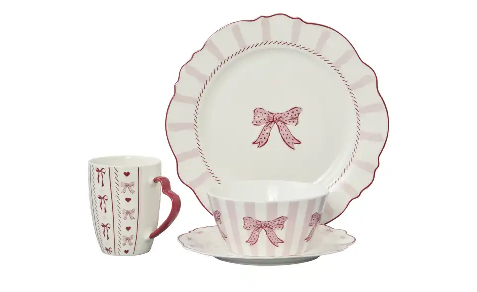 - Lieferumfang / mitgeliefertes Zubehör2x Kaffeebecher ca. 340ml2x Müsli- und Dessertschale ca. 14x6,5cm2x Dessertteller Ø ca. 20cm2x Speiseteller Ø ca. 28cm