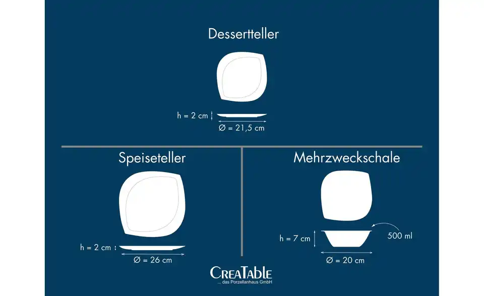 Hochwertiges Geschirr aus Porzellan sowie Gläser und Besteck in schicken Designs von klassisch bis modern – dafür ist die deutsche Marke CreaTable bekannt. Der Markenname setzt sich auf den englischen Begriffen für „kreativ“ und „Tisch“ zusammen und spiegelt damit die Vision des Porzellanhauses wider: dem Mix aus Kreativität und Tischkultur.