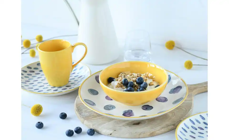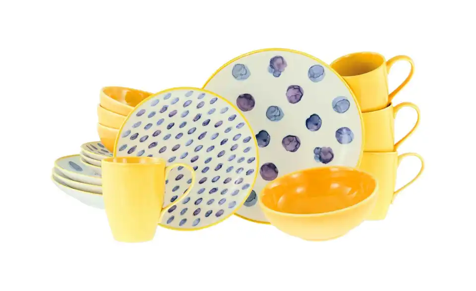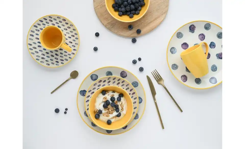 - Lieferumfang / mitgeliefertes Zubehör4 Speiseteller 27 cm 4 Dessertteller 21 cm 4 Mehrzweckschalen 16,5 cm 4 Kaffeebecher 30 cl