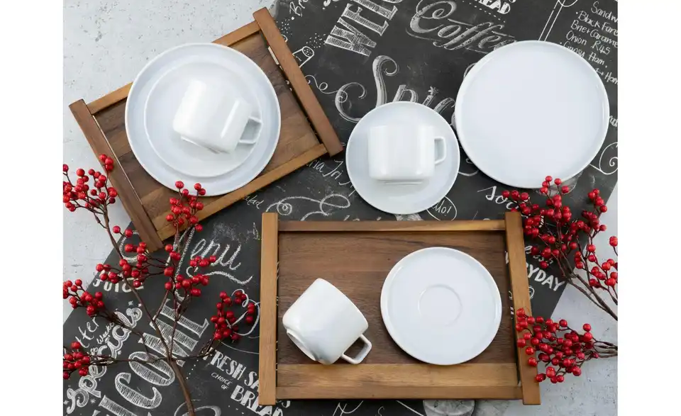 - Lieferumfang / mitgeliefertes Zubehör6 Desserteller 20 cm 6 Kaffeetesse 25 cl 6 Kaffeeuntere 15 cm