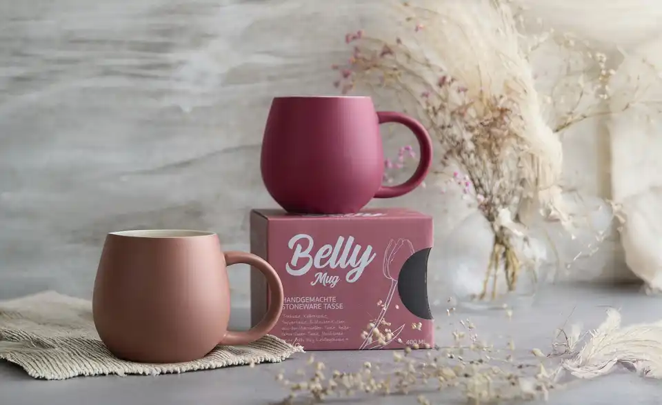 Die „Belly Mug“ ist durch ihre bauchige Form einzigartig. Die Tasse liegt gut in der Hand, hat ein großes Fassungsvermögen und ist durch ihre Struktur total anschmiegsam.Lieferung & Versand