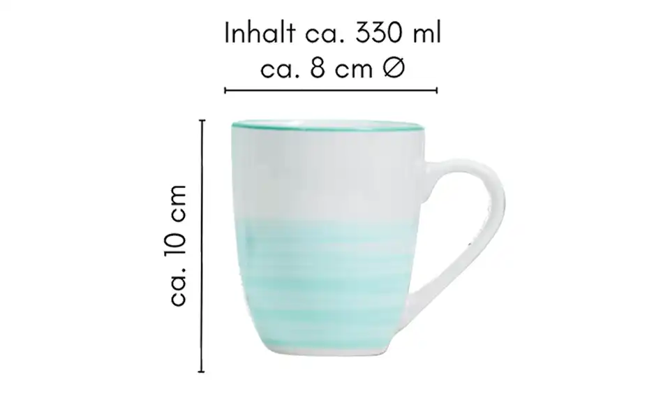 - Lieferumfang / mitgeliefertes Zubehör4 Kaffeebecher 330ml4 Speiseteller 27cm4 Schalen 14cm4 Desserteller 21cm