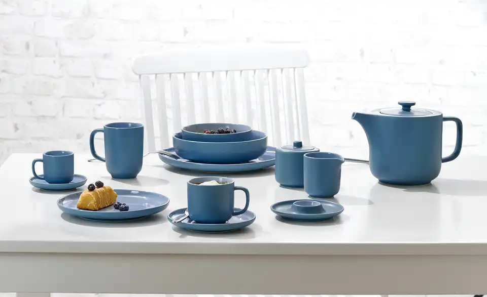 Innen- und Oberseiten der Geschirrteile sind mit einer Glanzglasur veredelt, Außen- und Unterseiten dagegen mit einer eher unüblichen Mattglasur. Der dadurch entstehende Effekt macht "Jasper" zu einem ganz besonderen Blickfang auf Ihrer Tafel.Lieferung & Versand