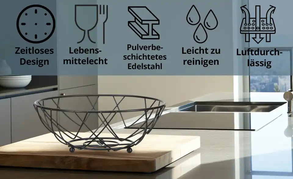 Obst, Gemüse oder auch Gebäck können Sie in diesen stylishen Obstkörben aufbewahren. Ein Hingucker in Küche und Büro!Lieferung & Versand