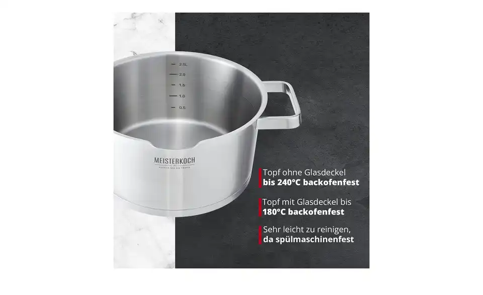Um auf höchstem Niveau zu kochen, braucht es drei Dinge: ausgewählte Zutaten, viel Liebe und bestes Koch-Equipment. MEISTERKOCH ist Ihr Partner für hochwertige Töpfe, Pfannen und Küchenzubehör in Chefkoch-Qualität, mit dem schon das Zubereiten der Speisen zum Genuss wird. Mit MEISTERKOCH kochen Sie wie die Profis, überzeugen Sie sich selbst!