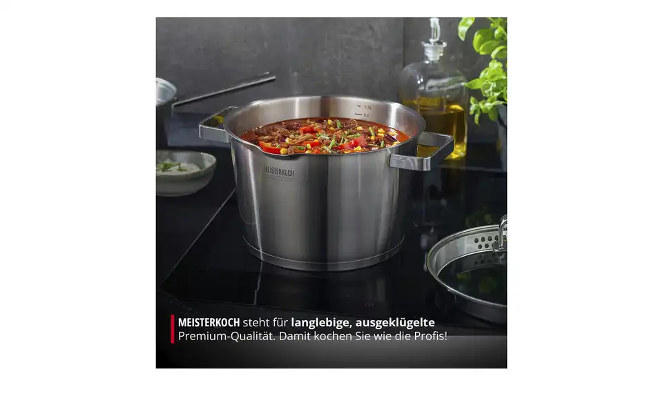 Um auf höchstem Niveau zu kochen, braucht es drei Dinge: ausgewählte Zutaten, viel Liebe und bestes Koch-Equipment. MEISTERKOCH ist Ihr Partner für hochwertige Töpfe, Pfannen und Küchenzubehör in Chefkoch-Qualität, mit dem schon das Zubereiten der Speisen zum Genuss wird. Mit MEISTERKOCH kochen Sie wie die Profis, überzeugen Sie sich selbst!