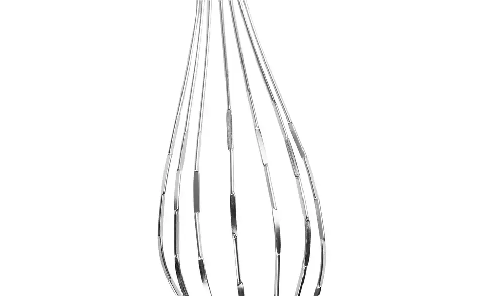 Mit dem Profi-Schneebesen werden flüssige oder halbflüssige Zutaten aufgeschlagen oder vermengt. Auch trockene Zutaten wie Mehl, Kakao und Backpulver lassen sich damit ideal vermischen. Den Schneebesen kann man auch gerne verwenden, um trockene Zutaten unter aufgeschlagene Eiermassen zu heben. Durch die speziell gezackten Drahtschlaufen lassen sich - äußerst zeiteffizient - nahezu alle flüssigen und halbflüssigen Zutaten aufschlagen. Dank des ergonomisch geformten Griffs liegt der Schneebesen einwandfrei in der Hand.Lieferung & Versand
