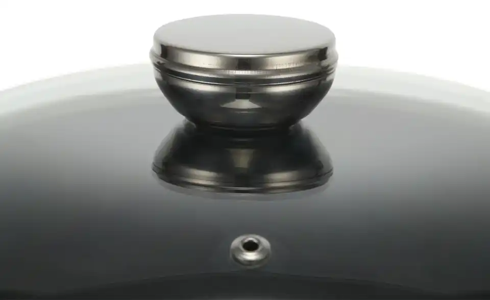 - Glasdeckel mit Edelstahlgriff und Dampfauslass