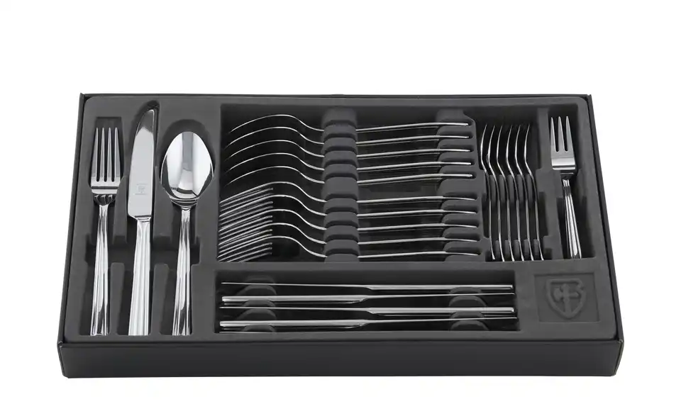 - Lieferumfang / mitgeliefertes Zubehör6x Menumesser6x Menugabel6x Menulöffel6x Kaffeelöffel6x Kuchengabel