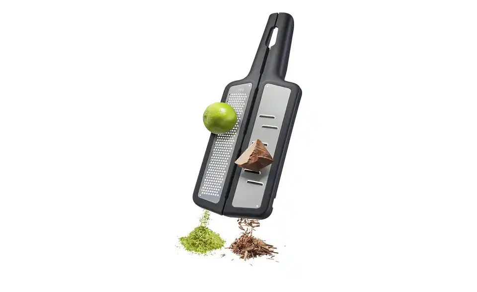 - Bietet eine ultrascharfe Feinreibe und einen Flockenhobel in einem