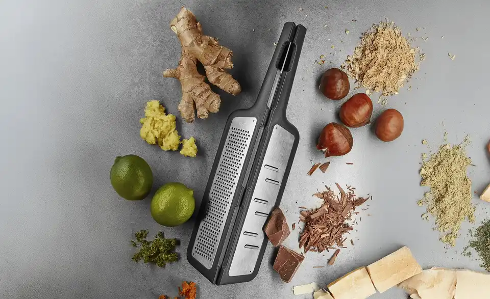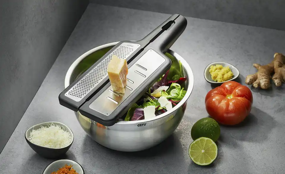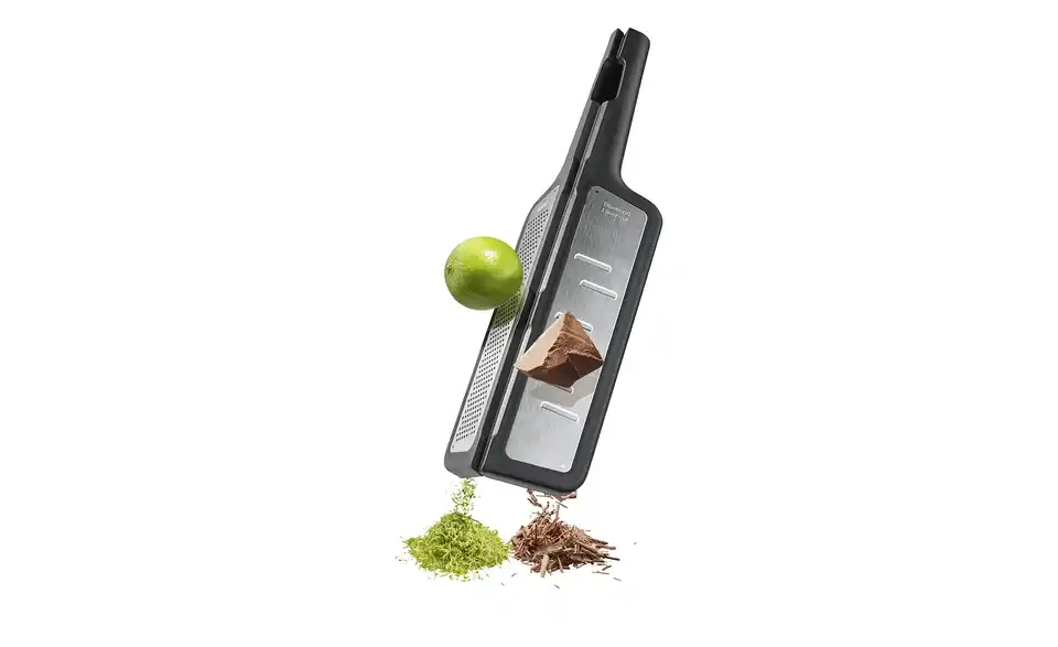 - Feinreibe ideal für Parmesan, Gewürze oder Ingwer; Flockenhobel für Schokolade, Hartkäse oder Trüffel