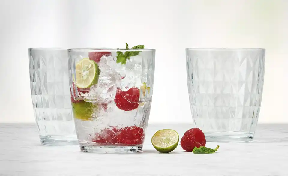 Genießen Sie ihr Getränk aus diesen hübschen Gläsern von Peill & Putzler. Besonders schön ist das rautenförmige Muster, welches dem Glas neben der Optik auch eine besondere Griffigkeit verleiht.Lieferung & Versand