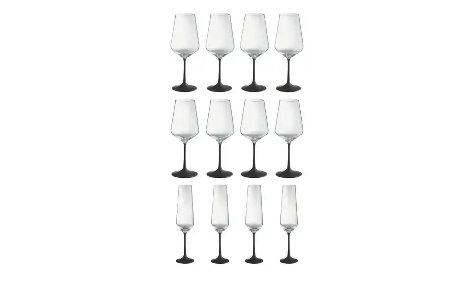 - Bestehend aus 12 Gläser: Weißwein-, Rotwein- und Sektkelche