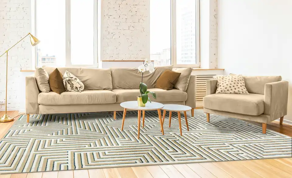 - Materialzusammensetzung TextilFlor 100% Polyester; Rücken: 76% Jute, 12% Polyester, 12% Latex