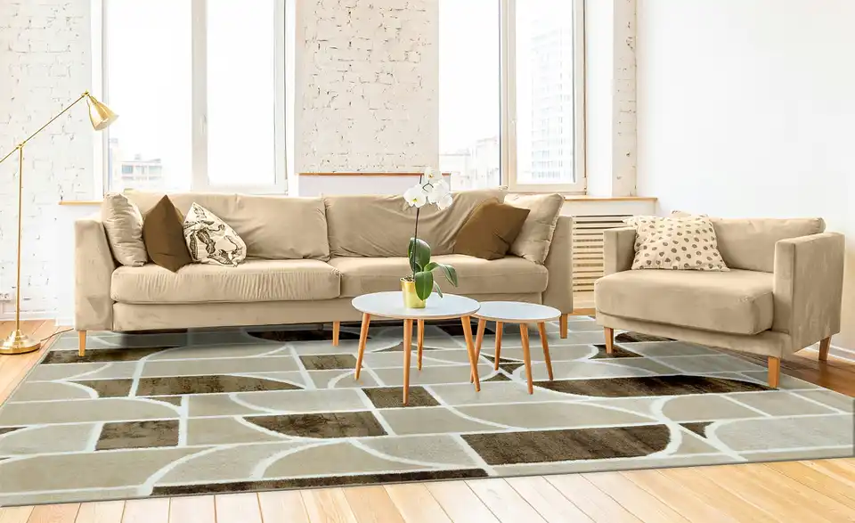 - Materialzusammensetzung TextilFlor 100% Polyester; Rücken: 76% Jute, 12% Polyester, 12% Latex