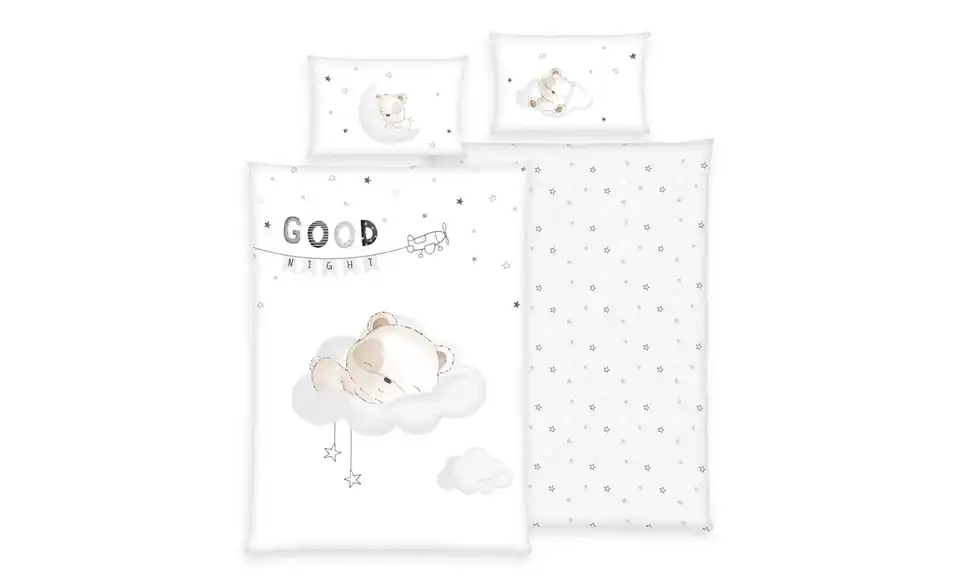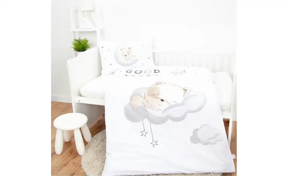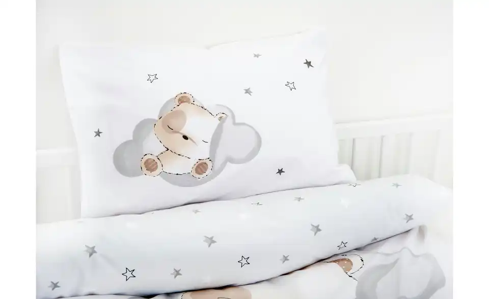 Die temperaturausgleichende babybest® Wendebettwäsche aus 100% Baumwolle ist nach STANDARD 100 by OEKO-TEX® zertifiziert und auf die zarten Ansprüche sensibler Babyhaut abgestimmt. Das süße Sleeping Little Bear Design macht die bequeme Bettwäsche zu einem echten Blickfang in jedem Kinderzimmer und zum idealen Geschenk. Dank der kompakten Größe ist die Kleinkinderbettwäsche ideal verwendbar in Reise-, Gitter- und Juniorbetten oder dem ersten großen Bett.Lieferung & Versand