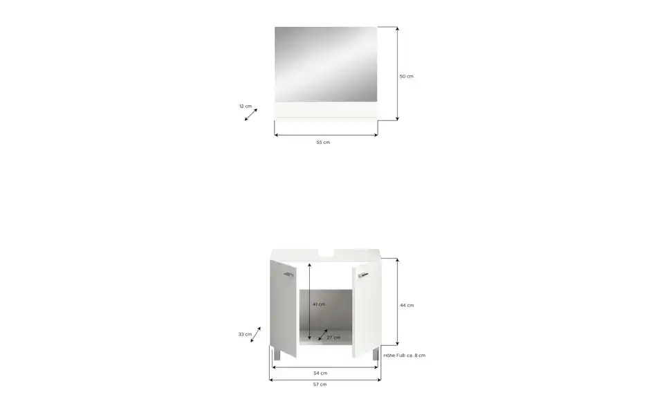 - Bestehend ausWaschbeckenunterschrank + Spiegel 57 x 44 x 33 cm