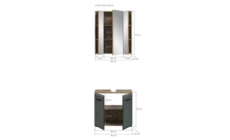 - Bestehend aus1x WBU, 1x Spiegelschrank