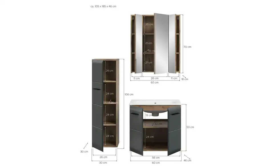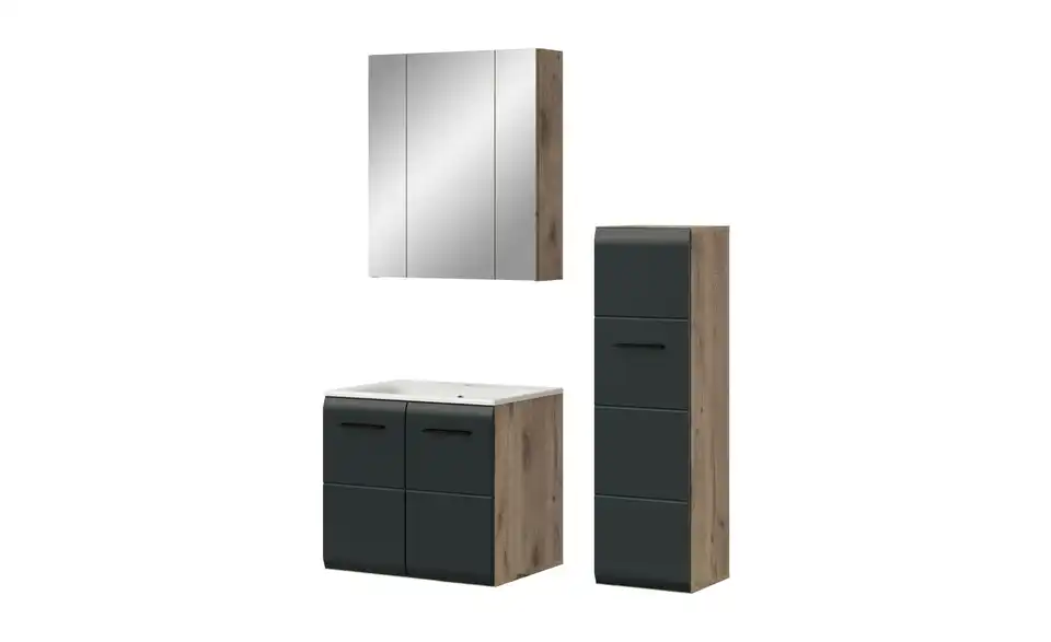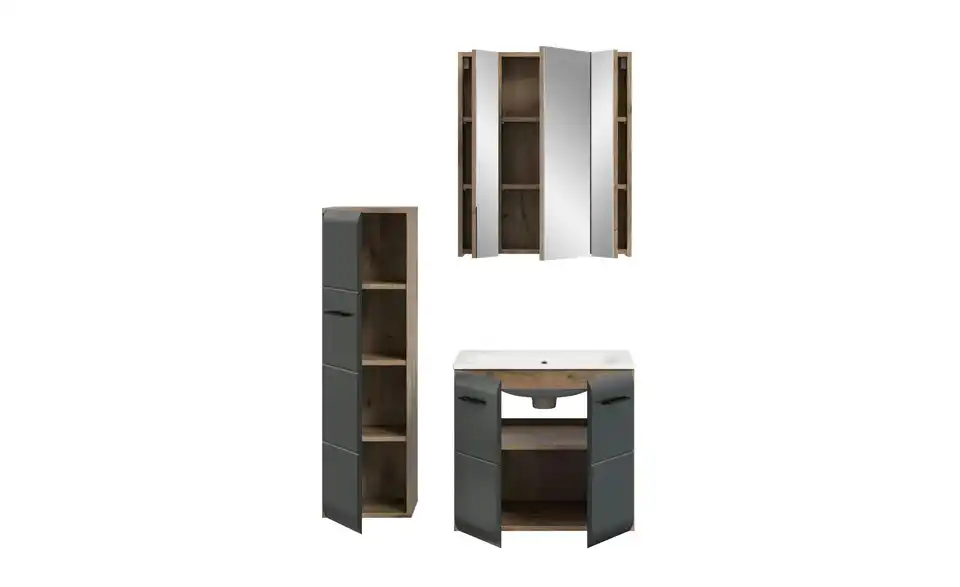 - Bestehend aus1x Stauraumtype, 1x Waschtisch inkl. Waschbecken, 1x Spiegelschrank