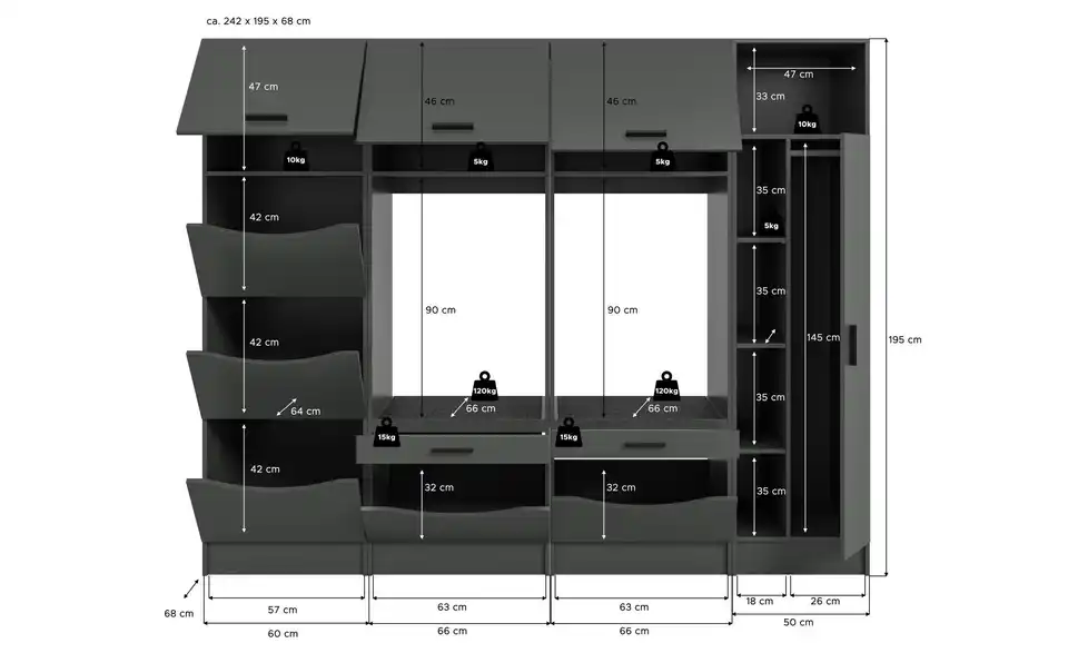 - Bestehend aus1x Wäscheschrank, 2x Waschmaschinenschrank, 1x Universalschrank