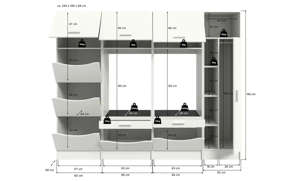 - Bestehend aus1x Wäscheschrank, 2x Waschmaschinenschrank, 1x Universalschrank