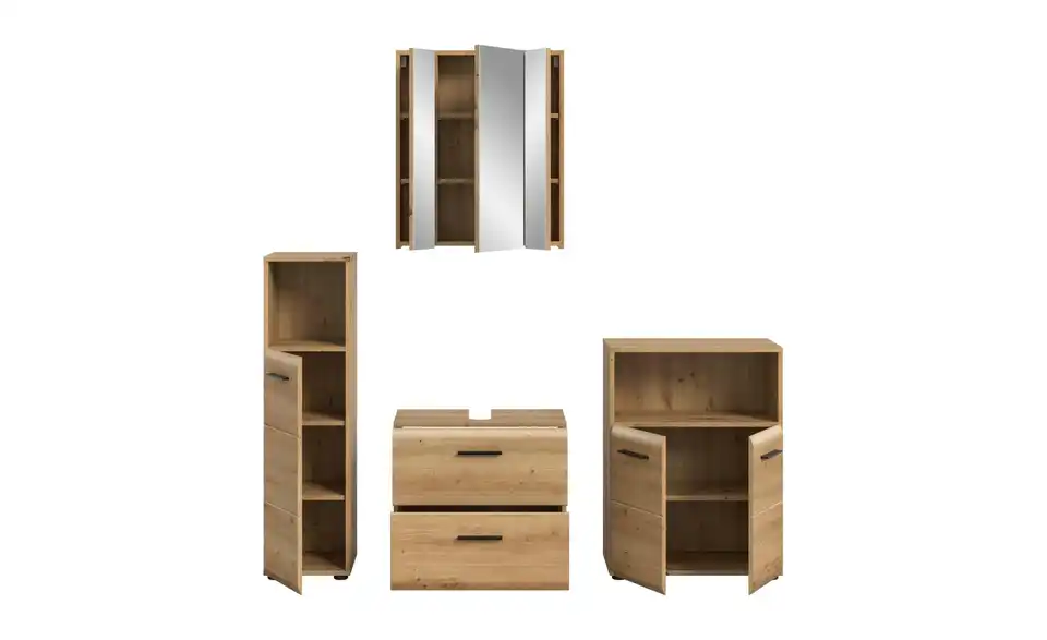 - Bestehend aus1x Standschrank, 1x WBU, 1x Spiegelschrank, 1x Standschrank breit