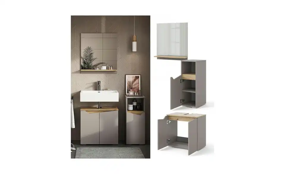 - Bestehend ausWaschbeckenunterschrank, Badspiegelschrank, Midischrank