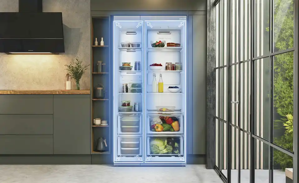 - Mehr zu Ausstattung / Funktion2 Schubladen und 4 Ablagen im Gefrierbereich2 Schubladen und 4 Ablagen im Kühlbereich5 TürfächerBreites LED Licht von ObenTür offen - AlarmPower Freeze und Power CoolUrlaubsschaltungWiFi-fähig mit SmartThings