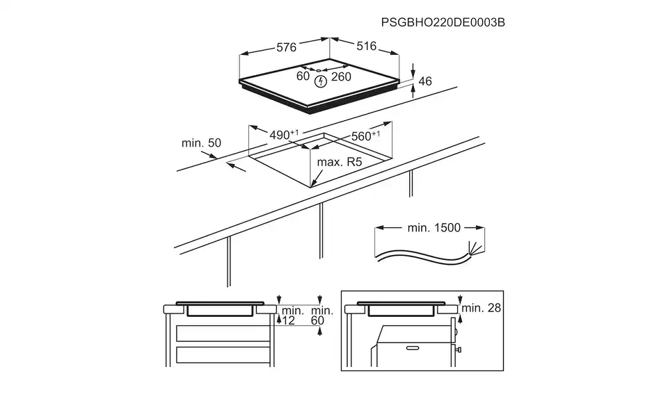 - Einbaumaß Breite576 cm