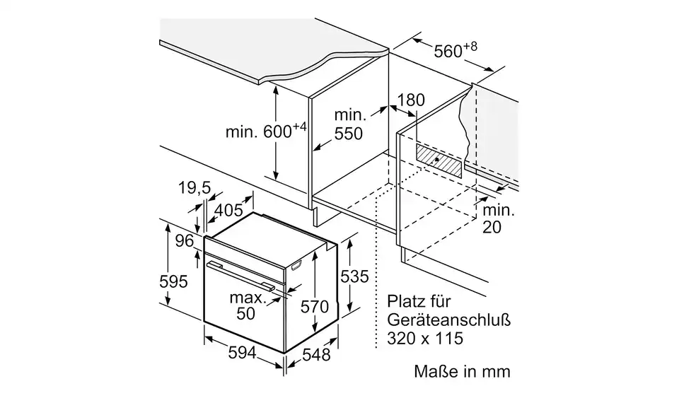 - Mehr zu MaßenEinbaumaße Herd 60,4 x 56 x 55 cmEinbaumaße Kochfeld 56 x 49 cm