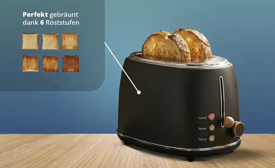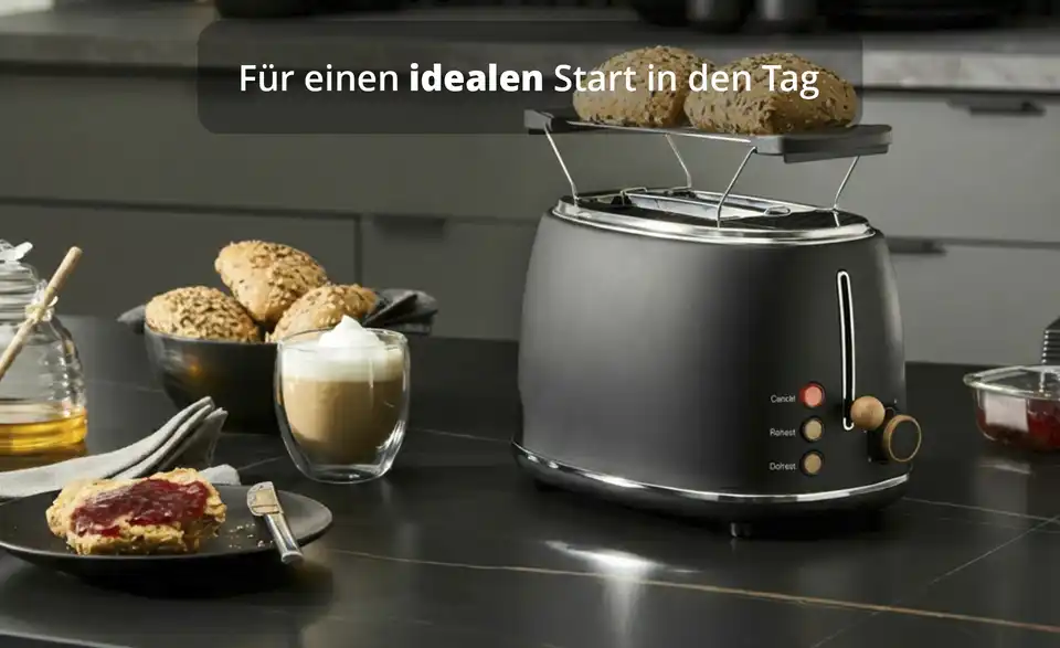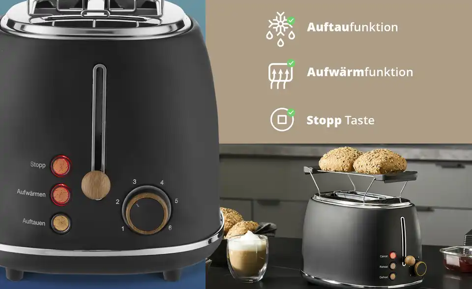 - Ausstattung / FunktionAbschaltautomatikAufwärmfunktionAuftaufunktionBrötchenaufsatzAuswurftasteStopptaste
