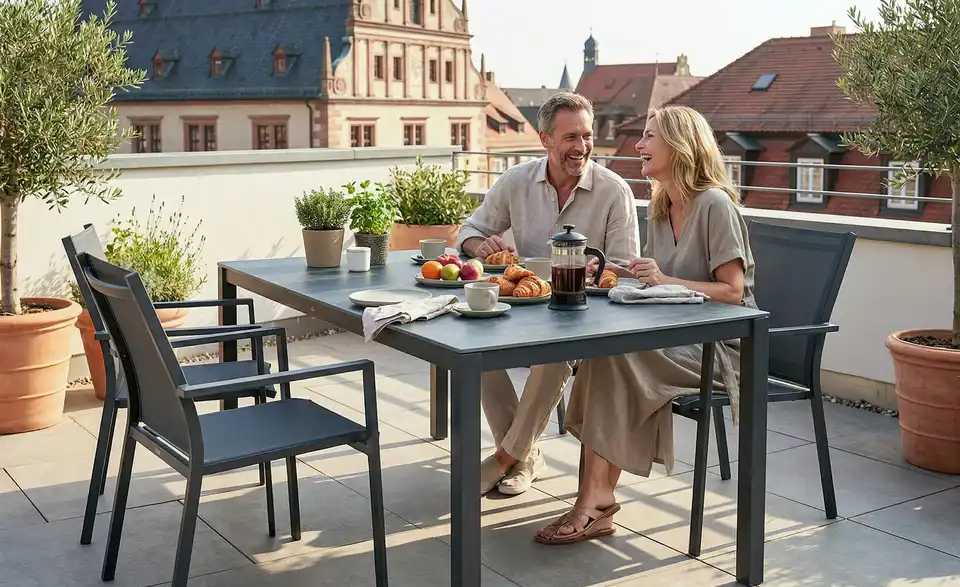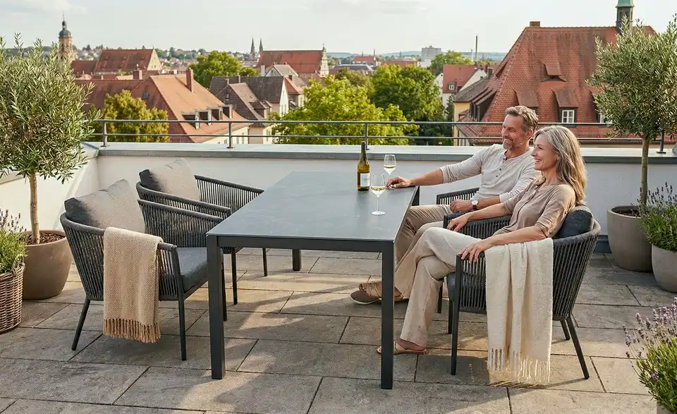 Vom Hängesesseln, über Sonnenliegen bis hin zur Lounge-Gruppen bietet die Marke a casa mia ein breites Sortiment an attraktiven und funktionalen Outdoor-Möbeln für Balkon, Terrasse und Garten. Dank wetterfester, pflegeleichter Materialien wie Polyrattan oder pulverbeschichtetem Aluminium haben Sie lange Freude an Ihren neuen Möbeln für den...
